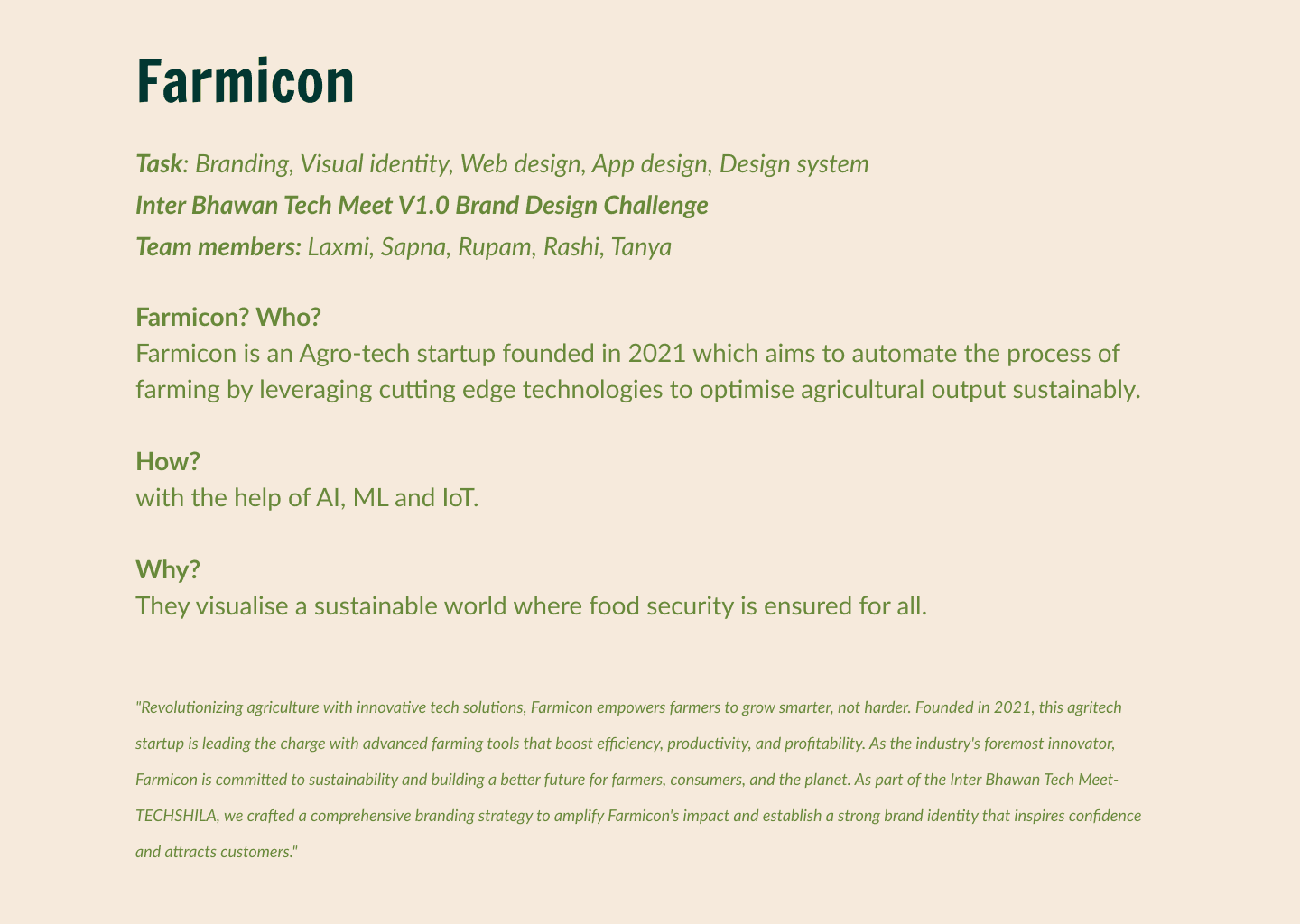 Inter Bhawan Tech Meet is an annual competition in IIT Roorkee held by Student Technical Council. This year it happened from 14-16th April. Hostels are known as Bhawans in IIT Roorkee, so basically different hostels participate in teams of 5, and the best bhawan wins. I participated in Farmicon Brand Design Challenge.